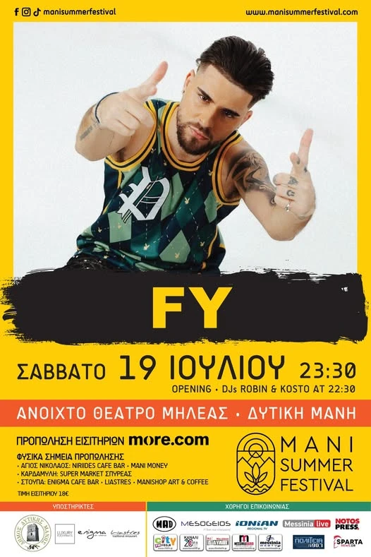 The most viral representative of the Greek rap scene is coming to the Milea Open Theater in West Mani on Saturday, July 19th for an explosive Live that will be unforgettable! FY is expected with his energy to "lift us up" with successive hits from his new album "Royal", released by Panik Records, such as […]