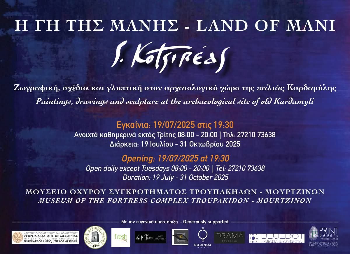 The Land of Mani Messinian Mani, archaeological site in Old Kardamyli "After approximately 130 exhibitions, the time has come to present my works for the first time, in the place that I have loved and adored so much since I was a little child. The place that has deeply influenced me over time and that […]