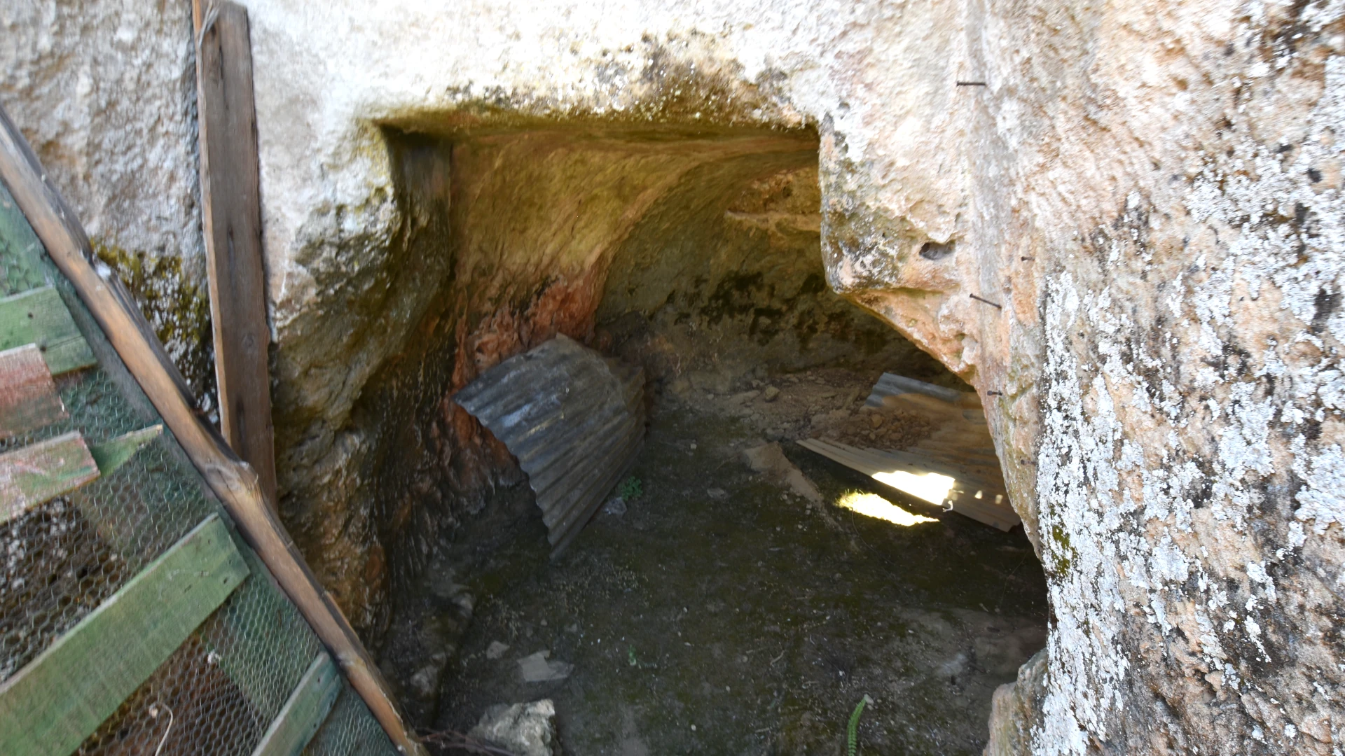 There is evidence from the past all around us in Mani. Threshing circles in every village bear witness to a comparatively recent agricultural age. But structures from the Bronze Age are less commonly encountered. Living in Proastio I have become fascinated by a local Mycenaean tomb. It lies just off the modern road leading out of the village up towards Exochori. The old footpath from Petrovouni joins this road just below the tomb. If you walk 250 metres along this path towards the ruined monastery surrounded by cypress trees of Agios Georgios you will pass through a strange landscape of pits cut into the soft stone. Returning to the road follow a modern track up into the shallow valley on the other side of the road and you will find more pits. As the Anavasi map of Exo Mani indicates this whole area is a Mycenaean graveyard. Its position adjacent to a modern quarry indicates the stone round about is relatively workable. Its other adjacency with Proastio’s Christian graveyard speaks of a continuity of human activity here on this shoulder of well-watered land with strategic views both to seaward and to the Taygetos mountains above.