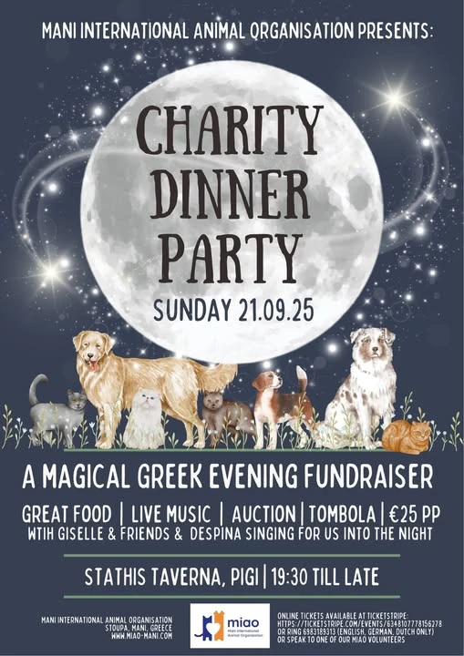 On Sunday, 21st September 2025, we invite you to join us at Stathis Taverna in Pigi for a truly special evening — our Charity Dinner Party in support of the animals in need in our region. The evening begins at 7:30 pm, with food and live music starting at 8:00 pm. You’ll enjoy a simple […]